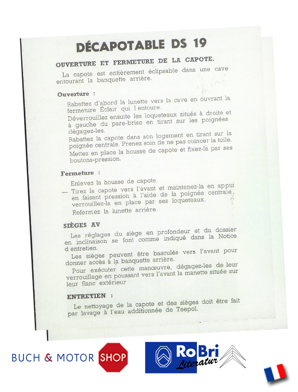 Citroën D Betriebsanleitung 1964 DS19 Cabrio (F)