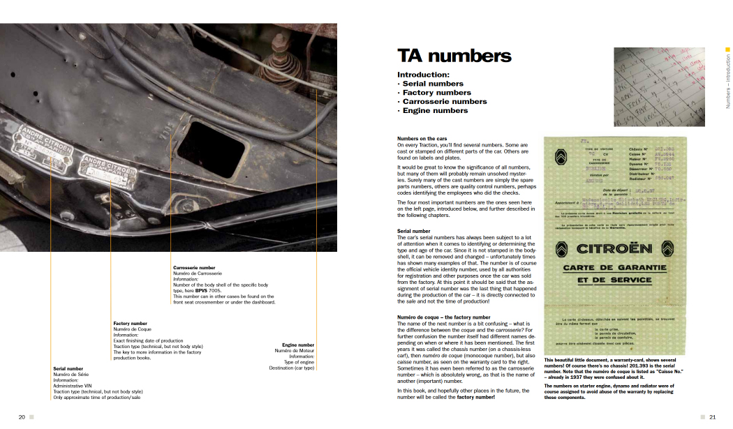 Der Citroën Traction Avant mit seiner mehr als 23-jährigen Produktionsgeschichte wurde im Laufe der Jahre in einer Vielzahl von Büchern beschrieben. Dieses Buch enthält allerdings eine große Menge an neuen und völlig unbekannten Informationen. Die Geschichte der Fahrzeuge wird anhand ihrer vier Hauptnummern erzählt: die Seriennummer, die Fabriknummer, die Karosserienummer und die Motornummer. Die meisten Informationen stammen direkt aus der ultimativen und einzigartigen Quelle: den alten Werksbüchern, die sich noch immer im Archiv der Marke Citroën befinden. In ihnen ist jedes einzelne Auto, das jemals die Citroën-Fabrik am Quai de Javel in Paris verlassen hat, aufgeführt.